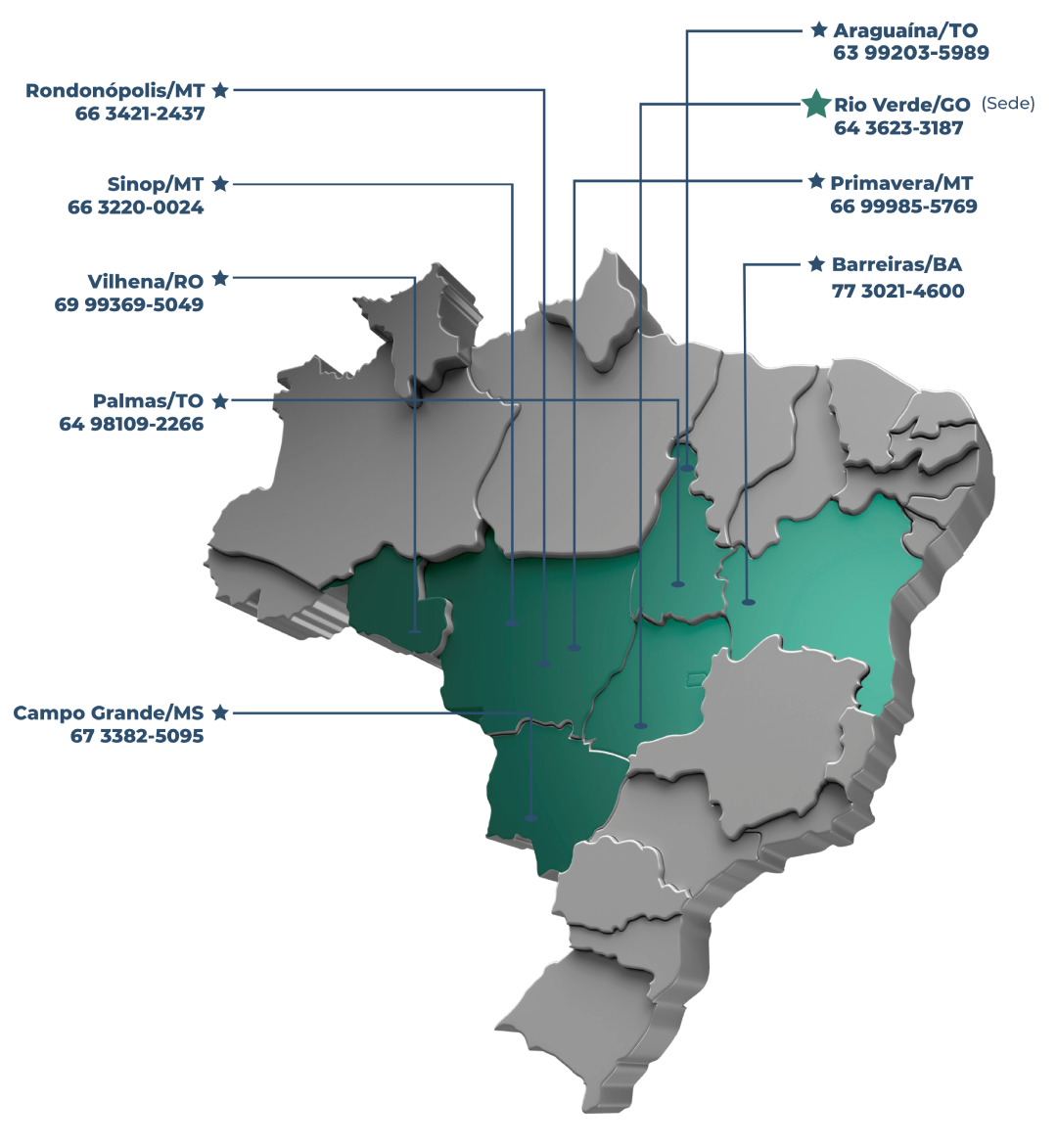 Com sede em Rio Verde (GO) e filiais estrategicamente posicionadas, garantimos agilidade logística, eficiência nas entregas e suporte próximo aos nossos clientes.
